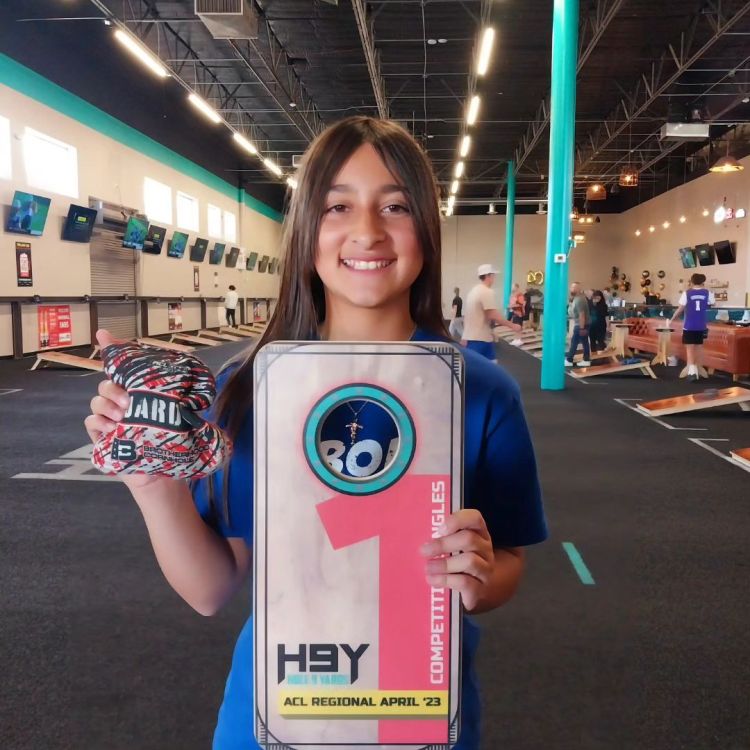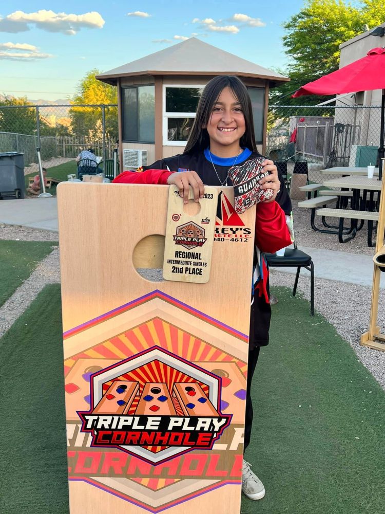 Minabella Woods is a 12 year old student who lived in New Mexico for 10 years, then recently moved to Arizona. She has a lot of favorites such as Stitch, BTS, and playing cornhole. She has played cornhole for a year an a half and has been already making a name for herself statewide. “I really like cornhole because it’s a sport I excel in, I meet new people , make new friends and bond with my partner/dad. I learn and grow in the sport everyday and can’t wait to see what the future holds for me.”